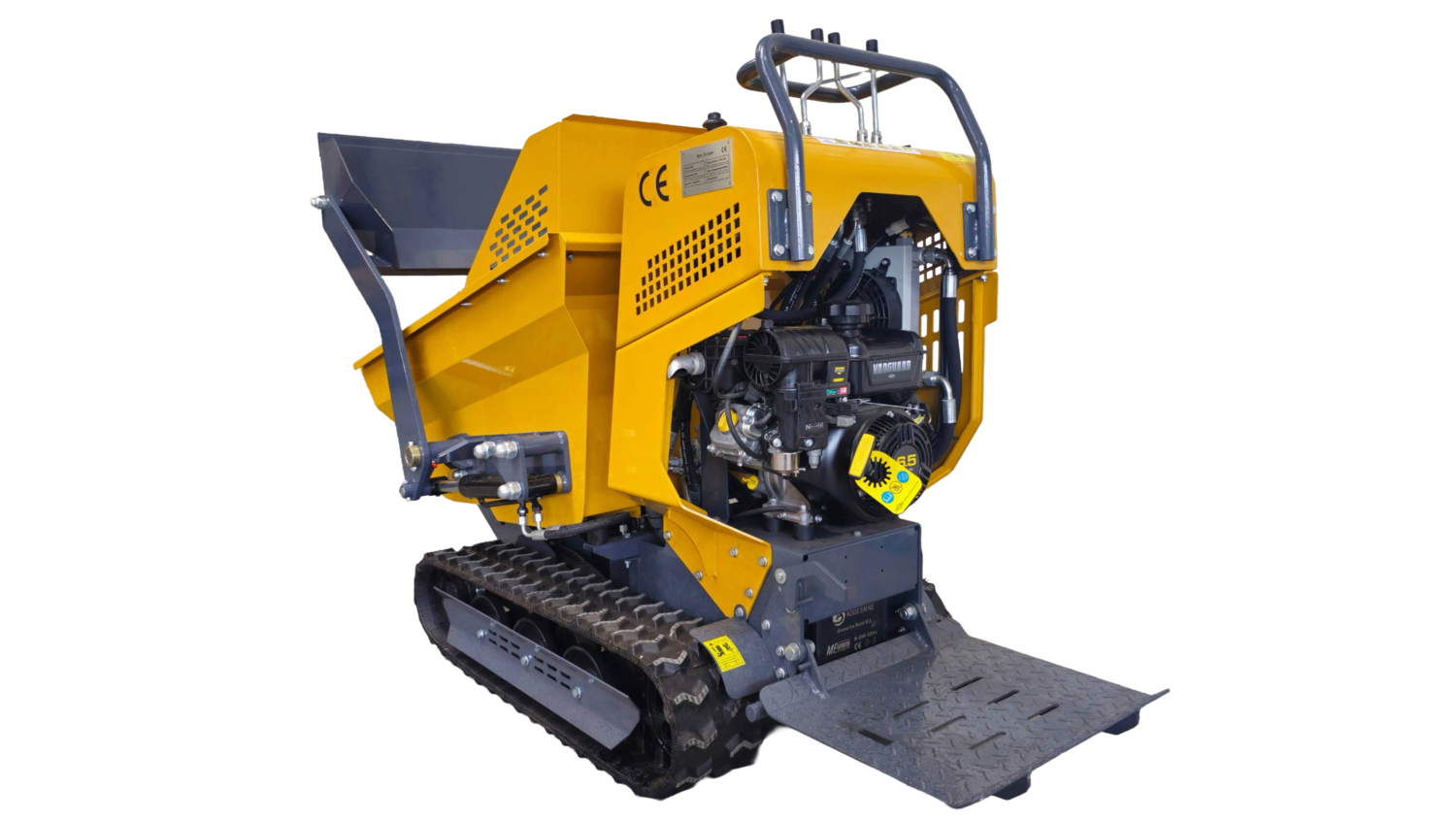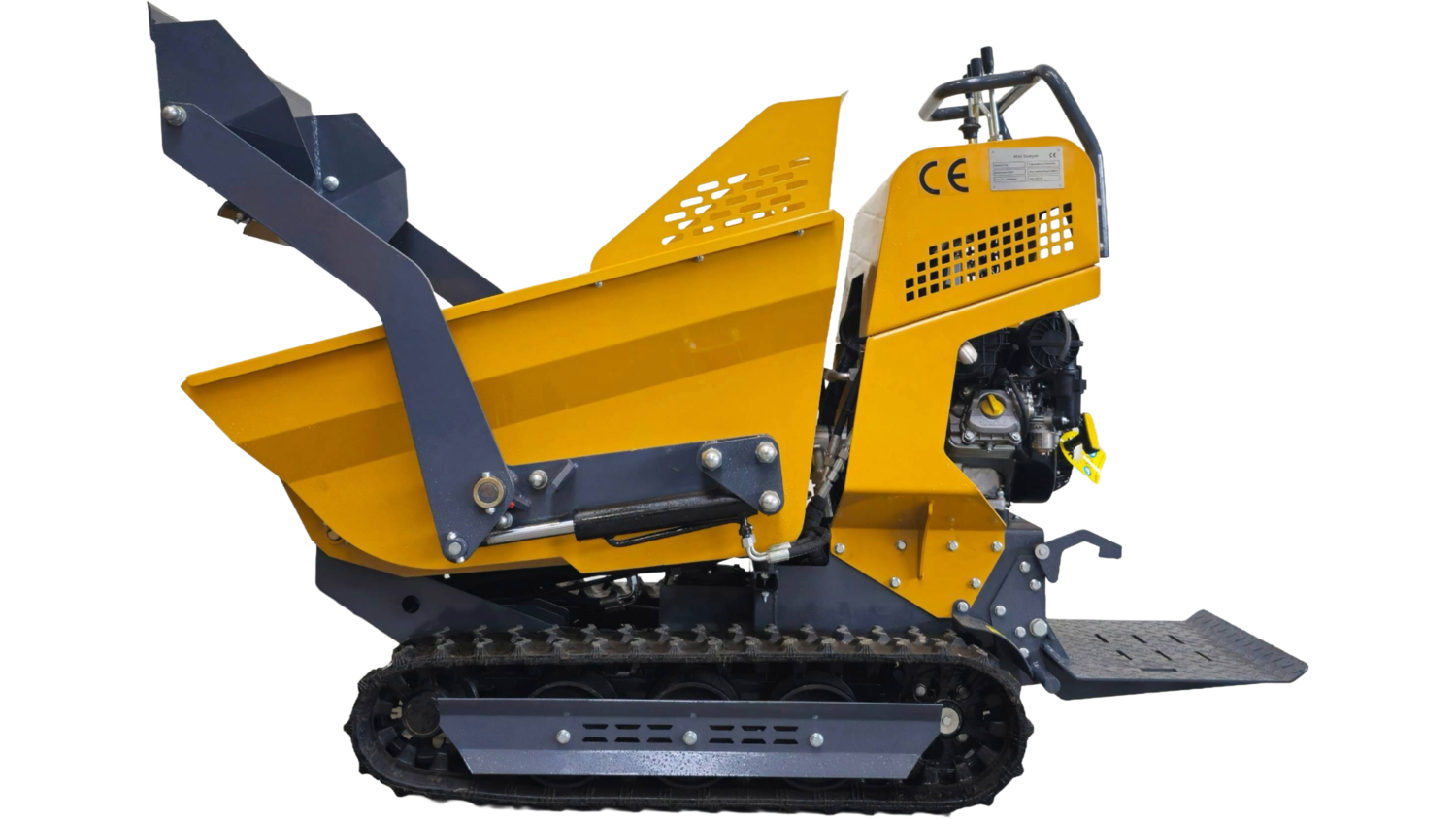 Podstawą jest solidne podwozie gąsienicowe, które gwarantuje trakcję na błocie, piasku i wzniesieniach. Wywrotka gąsienicowa napędzana jest przez sprawdzoną jednostkę Bailitong 6.5 KM (Briggs&Stratton). Co kluczowe, silnik wyposażono w rozruch elektryczny, co znacząco ułatwia uruchamianie maszyny i skraca czas przygotowania do pracy. Wozidło gąsienicowe posiada 3 stopnie prędkości pracy, co przekłada się na dynamikę pracy.