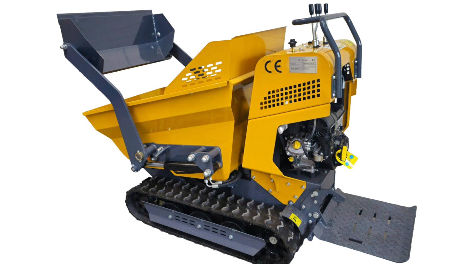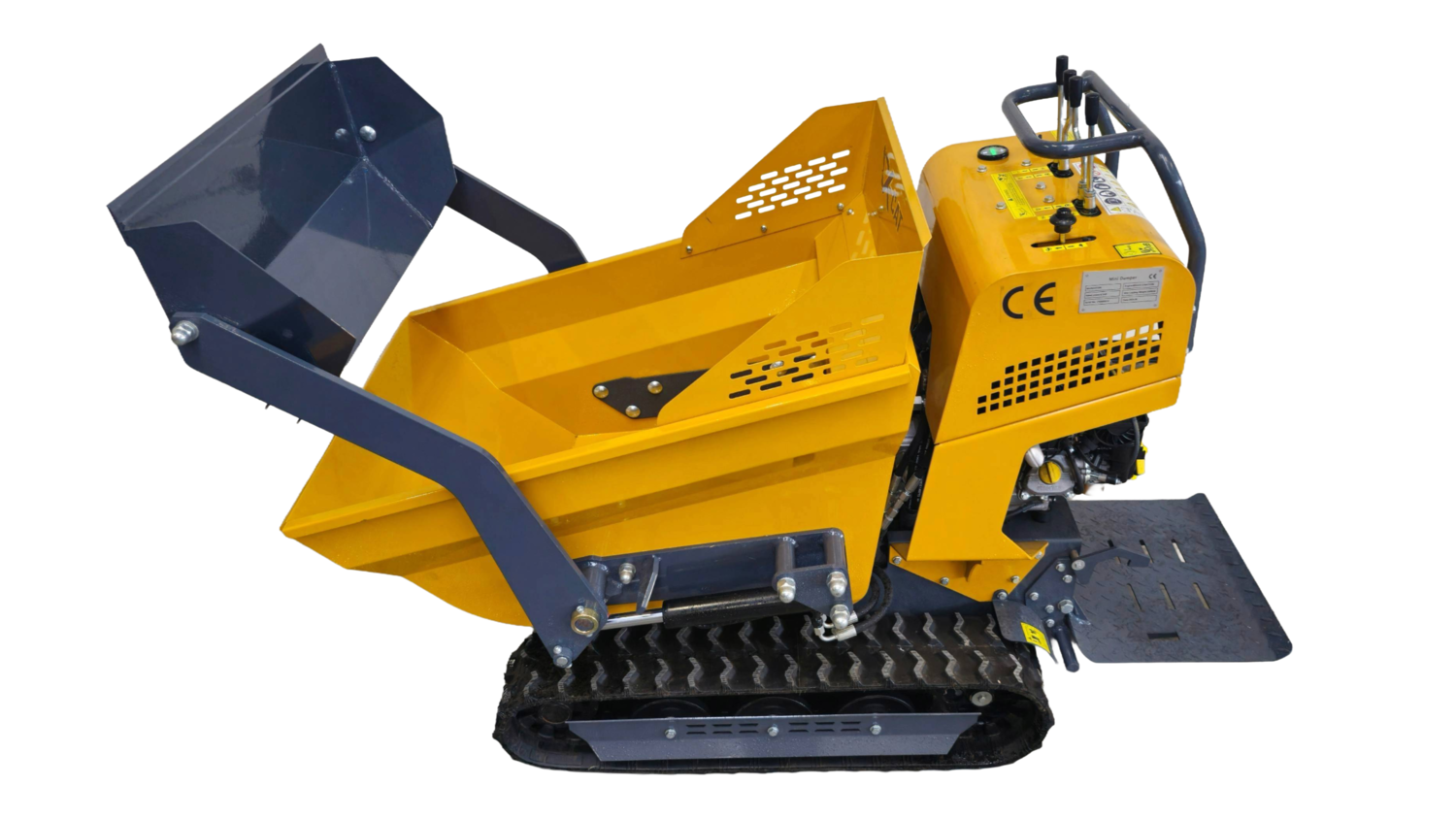 Model wywrotki gąsienicowej XC500 dba również o komfort operatora. Zamiast iść obok maszyny, operator może skorzystać ze składanej platformy (stopnia), co ułatwia pokonywanie dłuższych dystansów i zwiększa wydajność pracy. To idealny wybór dla firm poszukujących oszczędności czasu i odciążenia pracowników.